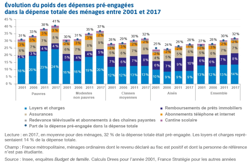 L’étude des équipes de France Stratégie sur les ►dépenses pré-engagées nous donne une vision objective de la problématique soulevée : « Le revenu arbitrable, soit le revenu dont dispose le ménage après déduction des dépenses pré-engagées, vise à estimer le budget sur lequel le ménage peut vraiment faire des choix de dépenses à court terme. Les inégalités en termes de revenu arbitrable sont, en 2017, près de deux fois plus fortes que les inégalités en niveaux de vie. »